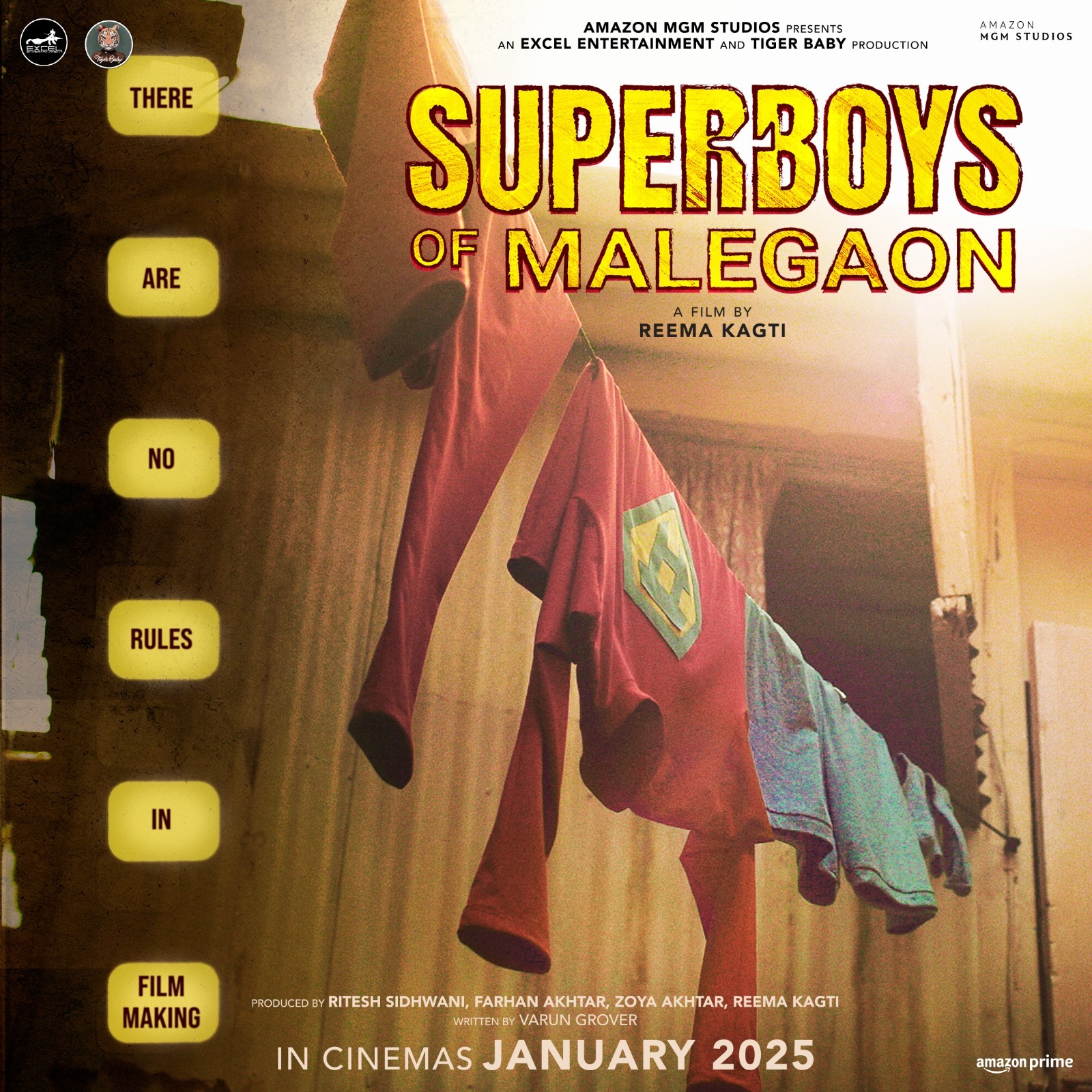 अमेज़न MGM स्टूडियो, एक्सेल एंटरटेनमेंट और टाइगर बेबी ने अपनी नई हिंदी फिल्म "सुपरबॉयज़ ऑफ़ मालेगांव" का ट्रेलर रिलीज़ कर दिया है। महाराष्ट्र के छोटे से शहर मालेगांव में सेट की गई यह फिल्म नासिर शेख की रीयल लाइफ स्टोरी है और यह दमदार होने के साथ उत्साहित करने वाली कहानी पेश करने गारंटी देती नजर आ रही है। "सुपरबॉयज ऑफ मालेगांव" को एक्सेल एंटरटेनमेंट और टाइगर बेबी ने प्रोड्यूस किया है, जिसके रितेश सिधवानी, फरहान अख्तर, जोया अख्तर और रीमा कागती प्रोड्यूसर हैं। इसे रीमा कागती ने डायरेक्ट किया है और वरुण ग्रोवर ने इसकी स्क्रिप्ट लिखी है। फिल्म में आदर्श गौरव, विनीत कुमार सिंह और शशांक अरोड़ा लीड रोल में हैं।