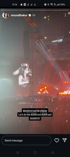 Mrunal Thakur wrote, “@jasleenroyal @coldplay let’s do this AGAIN and AGAIN and AGAIN!!!!!!!”