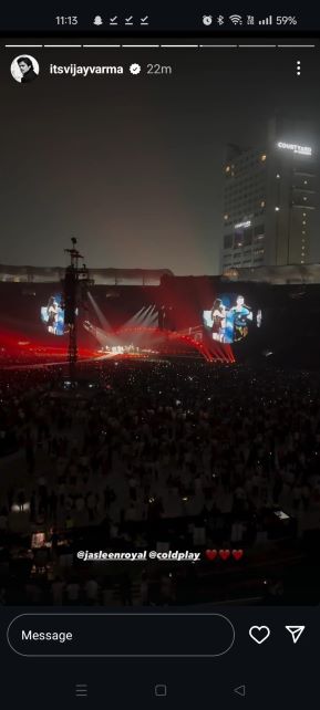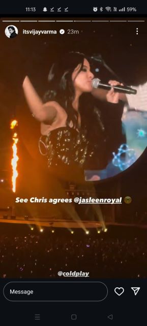 Vijay Verma wrote, “@jasleenroyal this set was such a delight! @coldplay”