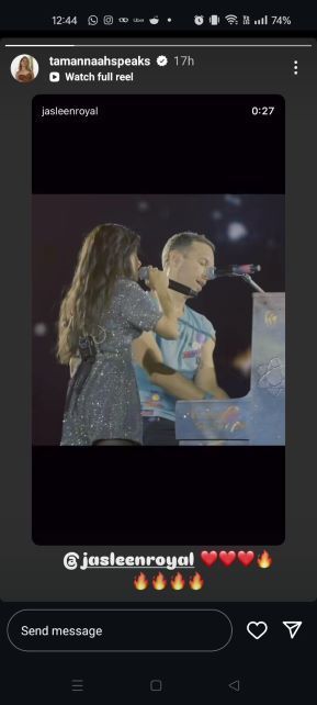 Huma Qureshi wrote, “Go @jasleenroyal Proud of you girl ❤️ @coldplay”