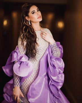 लैवेंडर ऑल द वे: नरगिस आकर्षक पैटर्न वाले क्रिस्टल से सजाए गए लैवेंडर बॉडीकॉन गाउन में चकाचौंध है। उन्होंने रफल्स वाले एक लंबे लैवेंडर टुकड़े के साथ लुक को पूरा किया, जो एक अद्वितीय स्वभाव दर्शाता है।