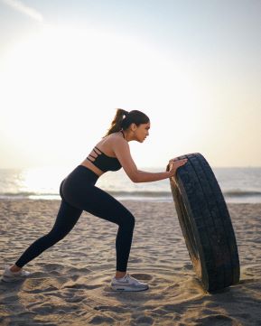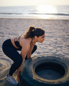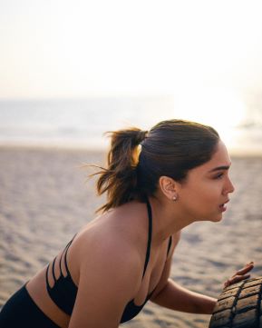 इस पोस्ट के लिए उन्होंने मज़ेदार कैप्शन दिया – अच्छे बीच वर्कआउट से कभी थकान महसूस नहीं होती 🌊🛞" #मंडे मोटिवेशन