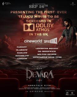 फिल्म ने अब एक और उल्लेखनीय उपलब्धि हासिल कर ली है, यह यू.के. में डॉल्बी एटमॉस में प्रदर्शित होने वाली पहली तेलुगु फिल्म बन गई है। यू.के. का भव्य प्रीमियर 26 सितंबर को सबसे प्रतिष्ठित थिएटरों में से एक में होने वाला है, जिसने पहले दुनिया भर की फिल्मों की मेजबानी की है। यह उपलब्धि देवरा के वैश्विक प्रभाव को और मजबूत करती है।